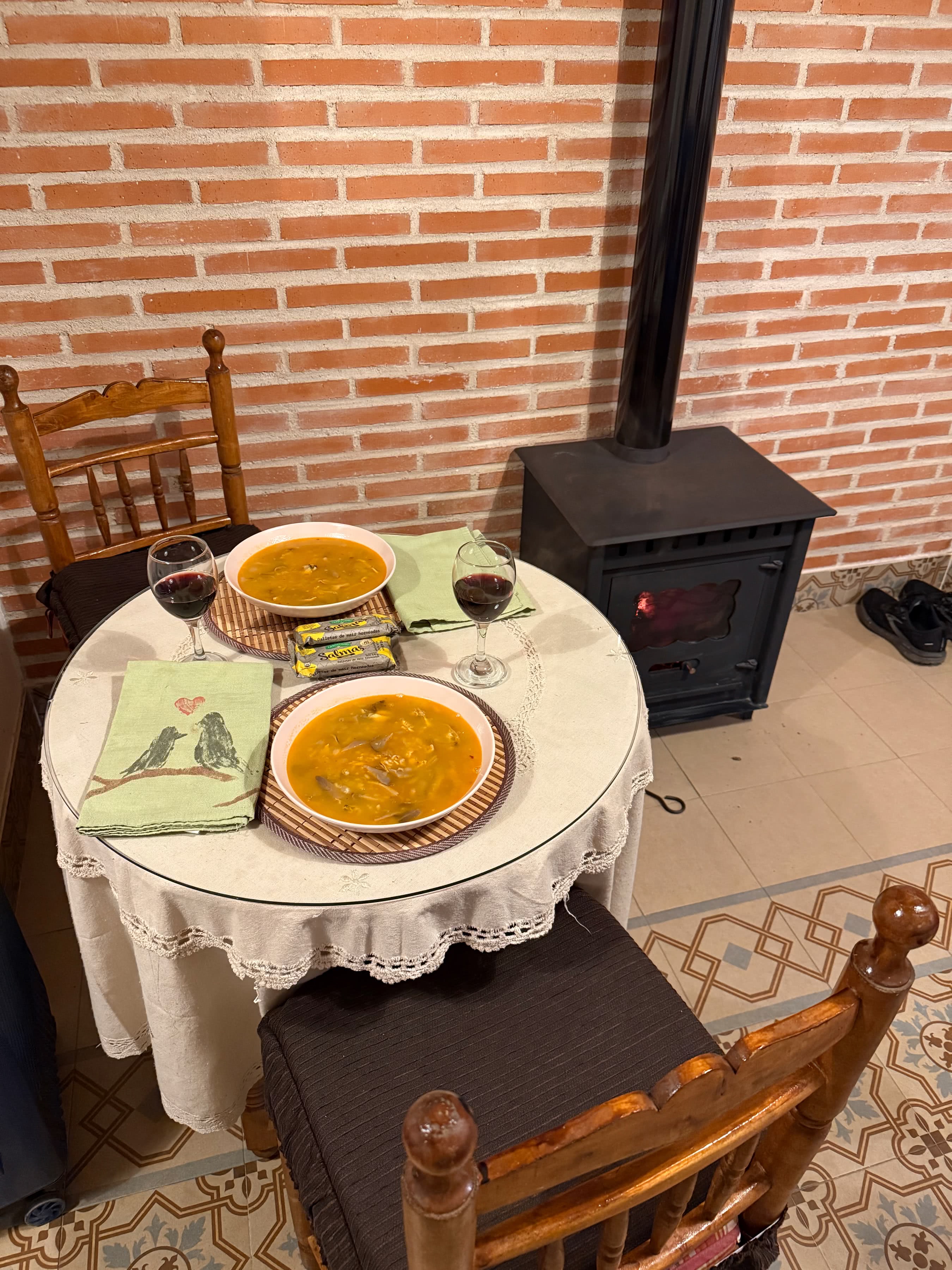 The fact that thereβs a kitchen here was so exciting! We visited a local market to get our breakfast staples and got creative by making a soup for dinner.Β The wood stove and couch also proved for an incredibly cozy experience!